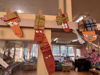 出来上がったドングリは保育室の入り口に飾り、毎日にっこり顔のかわいいドングリたちがお出迎えしています!