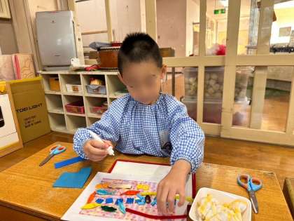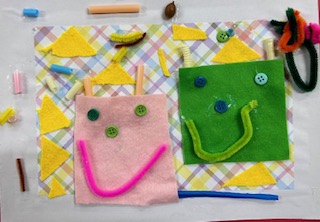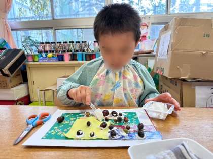 切ったり、モールを曲げたり、素材と素材を組み合わせながら「こうしたらうさぎにみえる!」「かわいくできた!」と完成した作品を友達と見せ合いながらつくることを楽しんでいました。