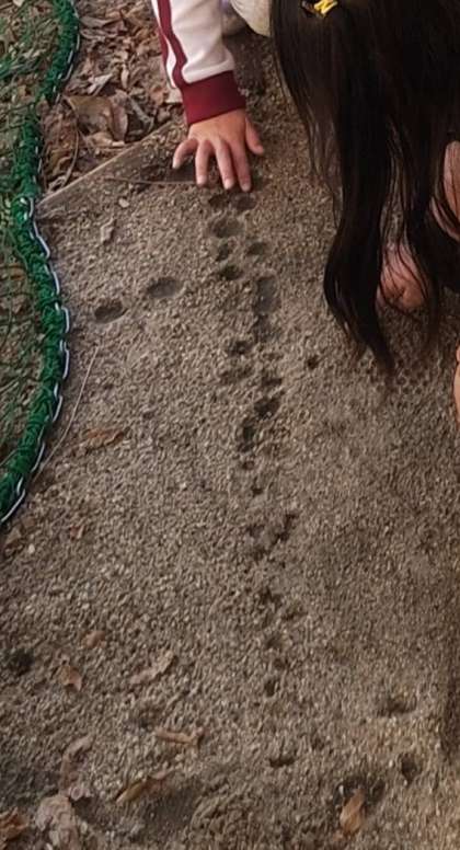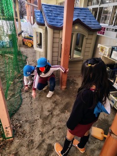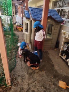 外遊びで砂場へ遊びに行った子どもたち(5歳児)が「先生〜!」とびっくりした顔で駆け寄ってきました。