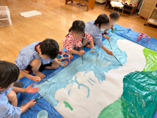 あか組の子どもたちは、絵の具遊びが大好きです!