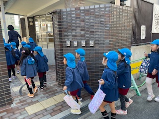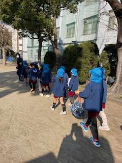 上靴をもって、小学校に出発〜。