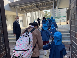 門では、校長先生がお出迎えしてくださいました!