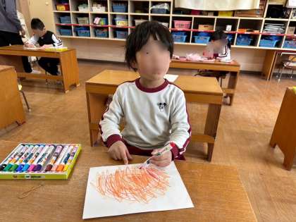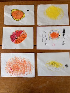 切る前にそれぞれ想像する晩白柚の中の様子を絵にかいて楽しむことにしました!