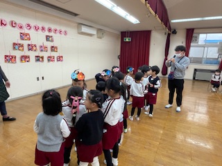 来月の誕生会は、桃組さん、赤組さんは一つ大きい組さんに、青組さんは、一年生になっていますね♪