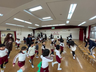 みんなでの遊びは、保護者の方にも入っていただき、『誕生月なかま』の遊びをしました。