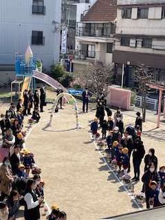 式後のお見送りの際には、年中、年少組の保護者の方も集まってくださり、みんなでお見送りすることもできました。