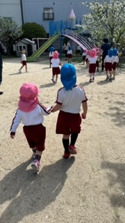 今日は、昨日より泣いている子どもが減りましたね!少しずつ幼稚園は、楽しいところと思ってくれればなぁと思います(^-^)