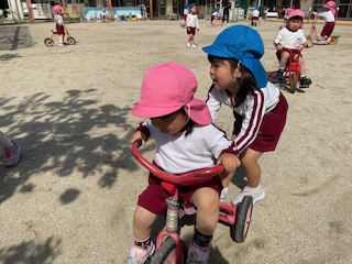 優しいお兄さん、お姉さんに少しずつ親しみを感じている桃組(3歳児)さんでした♪