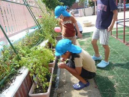 子どもたちと生長の様子を見たり、実の中にある種を集めたりました。