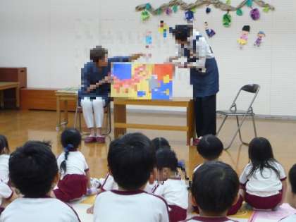 西成図書館絵本の会の方が、いろいろな絵本を、子どもたちに読んでくださいました。