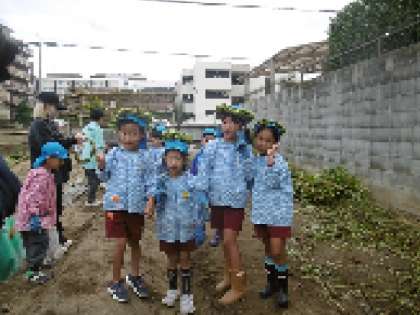 お芋ほりをした後は、お芋のつるでリース作りをしたよ☆