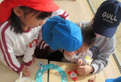 遊びの合間には、おうちの人と一緒にクリスマスリースづくりをしました。