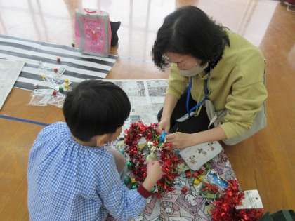子どもとおうちの方の思いが込められた華やかなリースが完成し、ワクワクする季節がやってきたな〜と感じるひとときとなりました☆