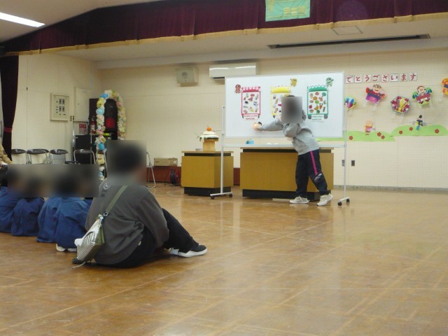 始業式では、園長先生から3学期の楽しい行事について話を聞いたり、養護教諭から栄養バランスのよい食事についてのお話を聞いたりしました。