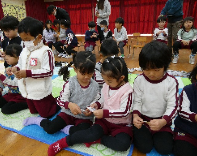 最後に、えんていあそびラッキーくじのくじ引きをみんなでしました。寒い日も外で元気いっぱい体を動かしていろいろな遊びにチャレンジしてほしいなと思います!