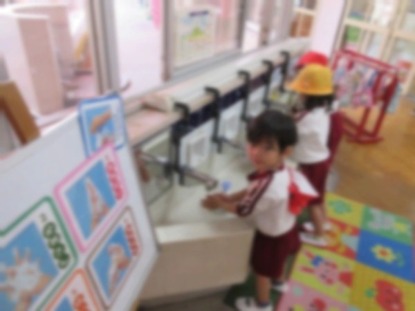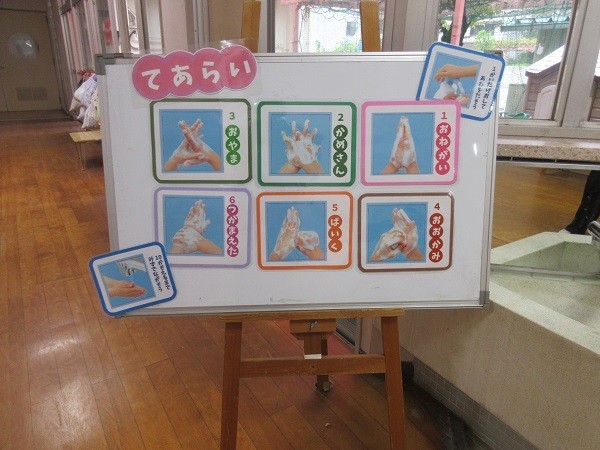 子ども達は、その後の手洗い・うがいの際には、掲示物を見ながら丁寧に手洗い・うがいをしていました。