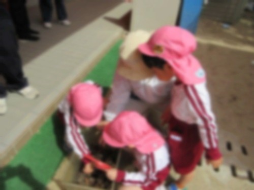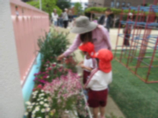 参観後半では、子どもたちは、滑り台や三輪車、ボール遊びなど体を動かしたり、ダンゴムシやお花に触れて身近な自然に親しんだりして、楽しい