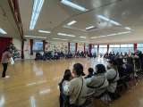 講師の先生に来ていただき、就学を控えた青組の子どもたちと保護者に向けて、書く時の...
