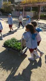 今日の青組さんは、栽培活動に精を出しました☆チューリップの球根植えでは、重たい土...