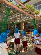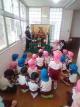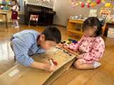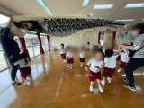 こいのぼりを園庭にみんなで飾ったり、遊戯室ではこいのぼりと一緒に遊んだりして過ご...