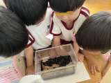 園庭でダンゴムシ探しに夢中な桃組さん。 「ダンゴムシさんどこに行くのかな?」と、...