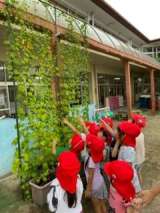 あか組さんが種まきしてくれたゴーヤがオレンジになっていることに驚いていた子どもた...