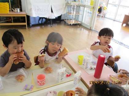 はじめてのパンランチ 公開日 2024/05/17 更新日 2024/05/17 幼稚園日記 ひよこ組さんは初めてのパンランチでした。今日のメニューはコッペパン・ウインナークロワッサン・牛乳・いわしっ子。大きなパンをほおばりながら、「ウインナーでてきたー」「(ストローで飲む牛乳は)ジュースみたい」「おさかなおいしい」とパンランチの時間を楽しみました。 いいね(0)
