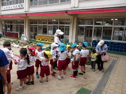 幼稚園の子どもたちがトンネルを作ってお見送りしました。