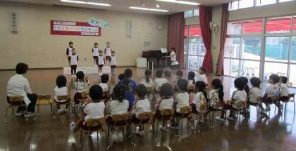 明日は、幼稚園の遊戯室で、保護者の皆さんに聞いて頂きます。かわいい歌声を楽しみにご参加ください。