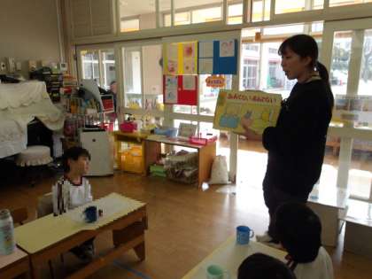 各クラスでは、地震時の避難の仕方を紙芝居で見たり、30年前に起こった阪神淡路大震災の新聞記事や写真を見ながら、命を守る行動や命の大切さについて話を聞きました。
