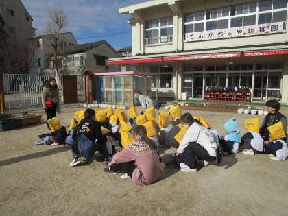 避難訓練の放送が流れたとき、降園準備をしているクラスや歌を歌っているクラス、楽器で遊んでいるクラスと様々でしたが、どの子どもも落ち着いて避難をすることができました。