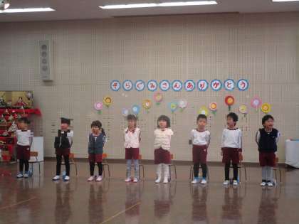 そして最後に、『お別れ会の歌』と『園歌』を歌って、はな組とひよこ組、先生たちが作った花道を通って、そら組が保育室に帰っていきました。
