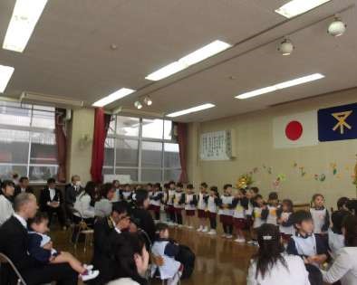 入園式では、在園児からお祝いの言葉と歌のプレゼントもありました。在園児も新しいひよこ組が来ることをとても楽しみにしていました。