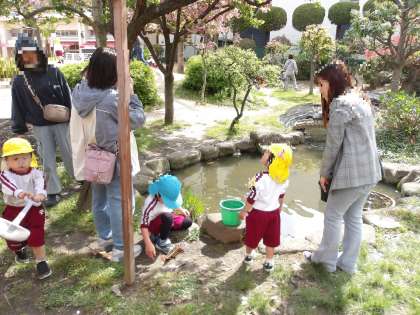 保育参観 公開日 2025/04/16 更新日 2025/04/16 幼稚園日記 4月16日(水) 今年度初めての保育参観がありました。 お家の人に見てもらえて喜んでいる姿や、少し恥ずかしそうにしている姿など、色々な子どもの姿が見られました。 朝は少し肌寒い気温でしたが、子どもたちはかけっこをしたり、池でザリガニを探したり、スクーターをしたりしてのびのびと遊んでいました。また、保護者の方には子どもの姿を見ていただいたり、一緒に遊んでいただいたりしました。 いいね(0)