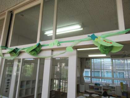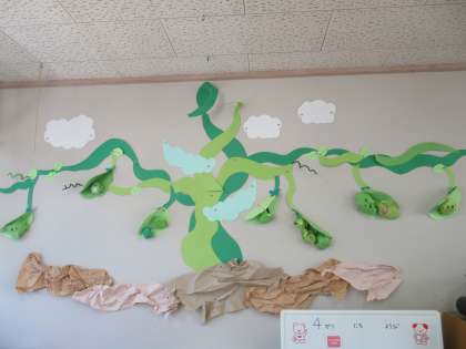 そら組のスナップエンドウ 公開日 2025/05/01 更新日 2025/05/01 幼稚園日記 先日、そら組はスナップエンドウの製作遊びをしました。そら組の部屋に植えた豆はぐんぐん大きくなり、雲の上や部屋の外までツルがのびました! 『ジャックと豆の木』のお話も楽しんでいたそら組の子どもたちは、「めっちゃのびてる!」「絵本と一緒だね!」と、飾られた豆を見て友達と話していました。 いいね(0)