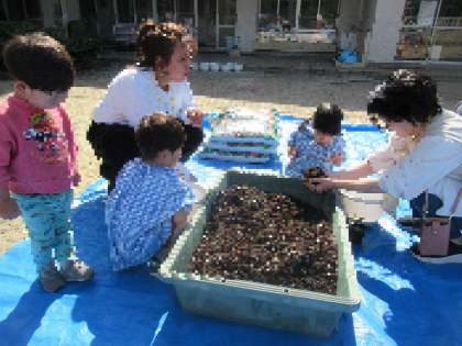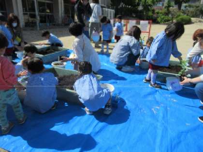 ふかふかの土の感触を楽しんだり、「早くおおきくなあれ!」と水やりをしたりして、お家の方と一緒に野菜のお世話をしました。たくさん実るように、毎朝の水やりのお世話も楽しみですね!