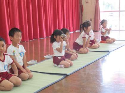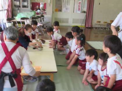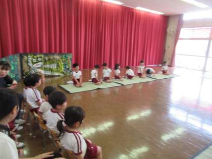 お茶会 公開日 2025/05/22 更新日 2025/05/22 幼稚園日記 3年間お茶会に参加してきたそら組(5歳児)です。 地域の方がお茶を点てている様子を見たり、お友達とお茶やお菓子をいただいたりしました。そして、さすがそら組さん!御座に座っているときの姿勢も格好よく、とても素敵でした。今日はひよこ組(3歳児)がその様子を見学していました。 「そら組さん格好いいなあ」「お茶会楽しみやな!」と5歳児へのあこがれと、お茶会への期待も高まったようです。 いいね(0)