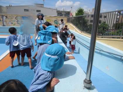 プールでは、安全に配慮しながら、子どもたちが水の心地よさを感じながら楽しく遊べるように取り組んでいきたいです。