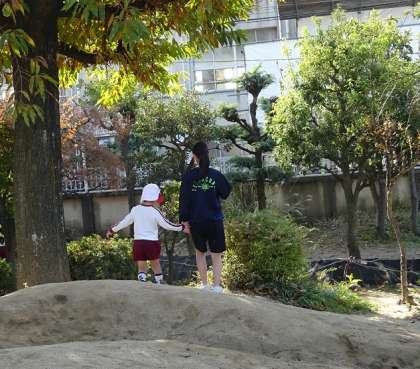 天下茶屋中学校から、職場体験で二人の学生が幼稚園に来てくれ、子どもたちはお姉さん先生に大喜び!人懐っこい天下茶屋幼稚園の子どもたちは、すぐに親しみの気持ちをもち、手をつないでもらったり、全力で鬼ごっこをしてもらったりしていました。