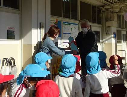 校長先生にお礼を言って手紙を渡すと、「お手紙、見えるところに貼っておくね。また、いつでも遊びに来てくださいね。」と言ってもらい、子どもたちはとっても嬉しそうにしていました。