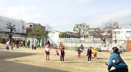 園庭はお日様が当たってぽかぽかいい気持ちのなか、小さいお友達が遊びに来てくださいました。