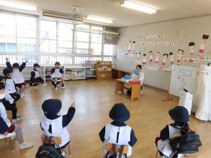 そら組、はな組に進級した子どもたちが、元気いっぱい登園してきてくれました。