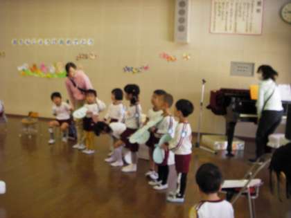 みんなで歌や言葉のプレゼントをして、幼稚園の子どもたち、お家の方、先生みんなで、4月生まれの子どもたちのお祝いをしました。