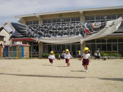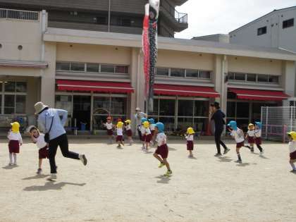 広い園庭では、体操、かけっこなど、元気いっぱいに遊んでいます。