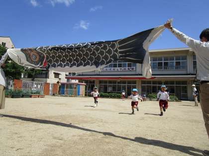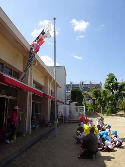 こいのぼりをあげたり、広い園庭で体を動かして遊んだり、こいのぼりまで元気いっぱいかけっこをしたり、みんなで楽しいひと時を過ごすことができました。