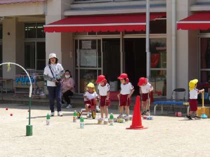 今回は、入園から1か月たち、「今」の子どもの様子を見ていただきたくて、広い園庭で全園児で大好きな「こいぽぽり体操」やなかよし遊び「ぱちぱちおじぎ」をしたり、かけっこする様子、好きな遊びを見つけて遊んでいる様子などご覧いただきました。