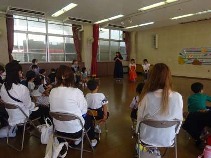 昨年度、天下茶屋幼稚園を修了して1年生になった子どもたちとお家の方、そして先生方が久しぶりに幼稚園に集まり、同園会をしました。
