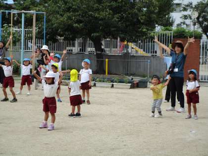 最後にはみんなで元気いっぱい体操して、かけっこもしました!