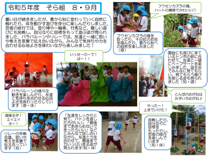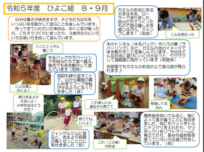 暑い日が続きましたが、元気に体を動かして遊ぶ姿がたくさん見られました。
