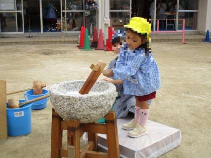 はな組は、去年の経験を生かして、元気にもちつきです!